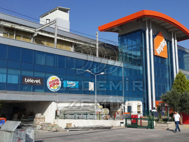 Mavişehir Koçtaş Yapı Maket AŞ.’de zemin onarımı ve kuru mekanik beton silimi yapılarak seramik yapıştırma harçları ve diğer tüm zemin sorunları giderildi.