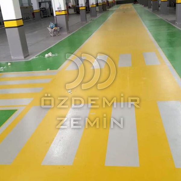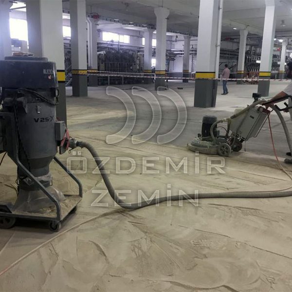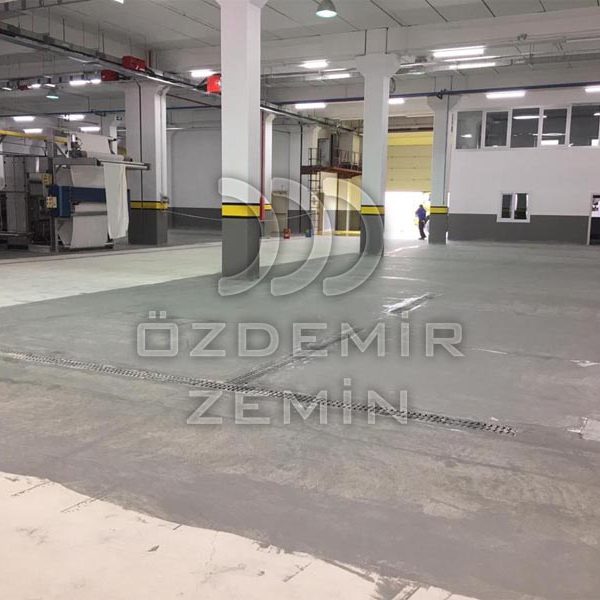 Sektörün önde gelen firmalarından biri olan Hmk Tekstil’de mekanik beton silimi. zemin onarımı, emprenye astarlama, epoksi boyama işlemi yapıldı ve belirlenen plan dahilinde zemin çizgileri çizildi.